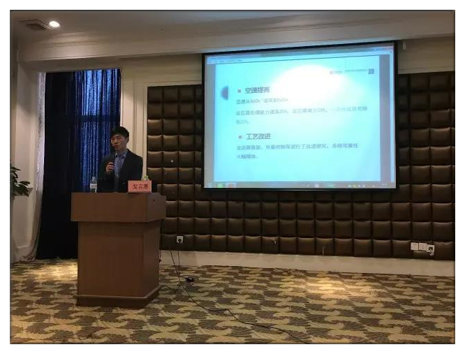 國能中電非電事業(yè)部總工程師納宏波博士在技術(shù)研討會(huì)會(huì)場(chǎng)就“炭基催化劑干法煙氣多污染物一體化脫除技術(shù)”與大家分享最近技術(shù)成果。