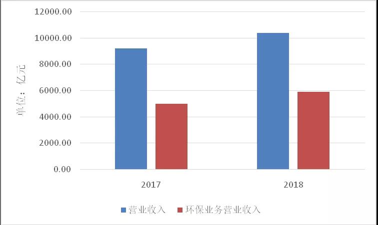 圖1. 2017、2018年列入統(tǒng)計(jì)的相同樣本環(huán)保企業(yè)營業(yè)收入、環(huán)保業(yè)務(wù)營業(yè)收入