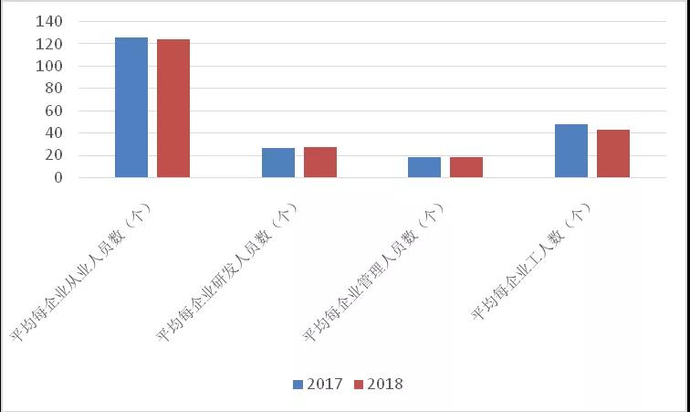 圖6. 2017、2018年列入統(tǒng)計(jì)的相同樣本企業(yè)平均各類從業(yè)人員數(shù)