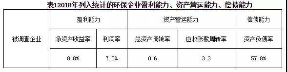 從資產(chǎn)營運(yùn)能力看,被調(diào)查企業(yè)總資產(chǎn)周轉(zhuǎn)率平均值為0.6、應(yīng)收賬款周轉(zhuǎn)率平均值為3.3,均較低,與2017年相比,2018年企業(yè)的總資產(chǎn)周轉(zhuǎn)率同比與2017年持平;應(yīng)收賬款周轉(zhuǎn)率略有所下降。反映環(huán)保企業(yè)的資產(chǎn)營運(yùn)能力基本保持穩(wěn)定,回款問題仍較突出。